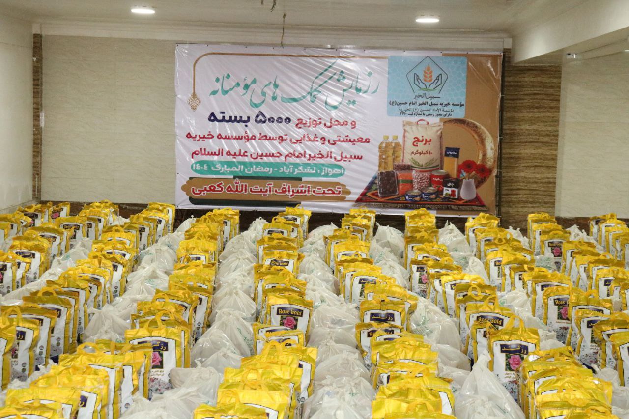 مسئول مؤسسه خیریه «سبیلالخیر امام حسین علیه السلام » با تسلیت شهادت حضرت امام خامنهای (ره) و با اشاره به سابقه ۲۰ ساله فعالیت این مرکز تحت اشراف آیتالله کعبی، اظهار داشت: «به فضل الهی در قالب کمکهای مؤمنانه و خیریه ای، موفق شدیم در ماه مبارک رمضان سال ۱۴۰۴، تعداد ۵ هزار بسته غذایی و معیشتی را جهت توزیع میان خانوادههای ایتام و نیازمندان مناطق محروم سطح استان خوزستان تأمین کنیم.»